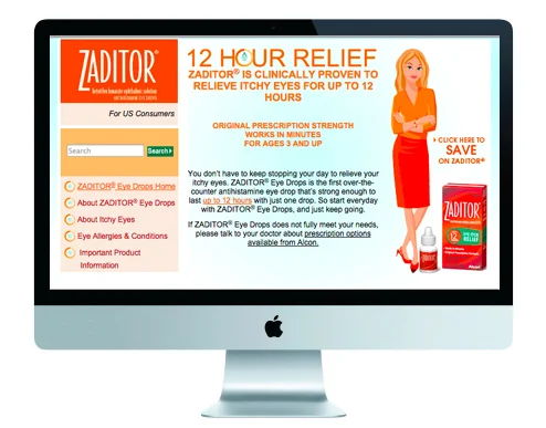 See that pretty lady to the left? She used to be the face of ZADITOR Eye Drops, a brand that you probably never heard of. Needless to say, ZADITOR is actually a premium, category-leading product that relieves itchy eyes better than any other eye drop on the market. Only problem was, "it never had a brand." So we created one. It has a very unique personality and voice for this category. But unfortunately, we had to lose the lady in orange.